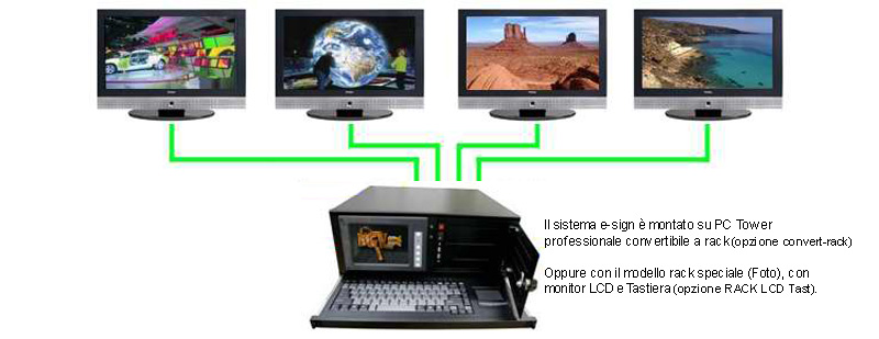Il sistema e' basato su unica Workstation PC ( da 4 fino a 16 uscite DVI/VGA )